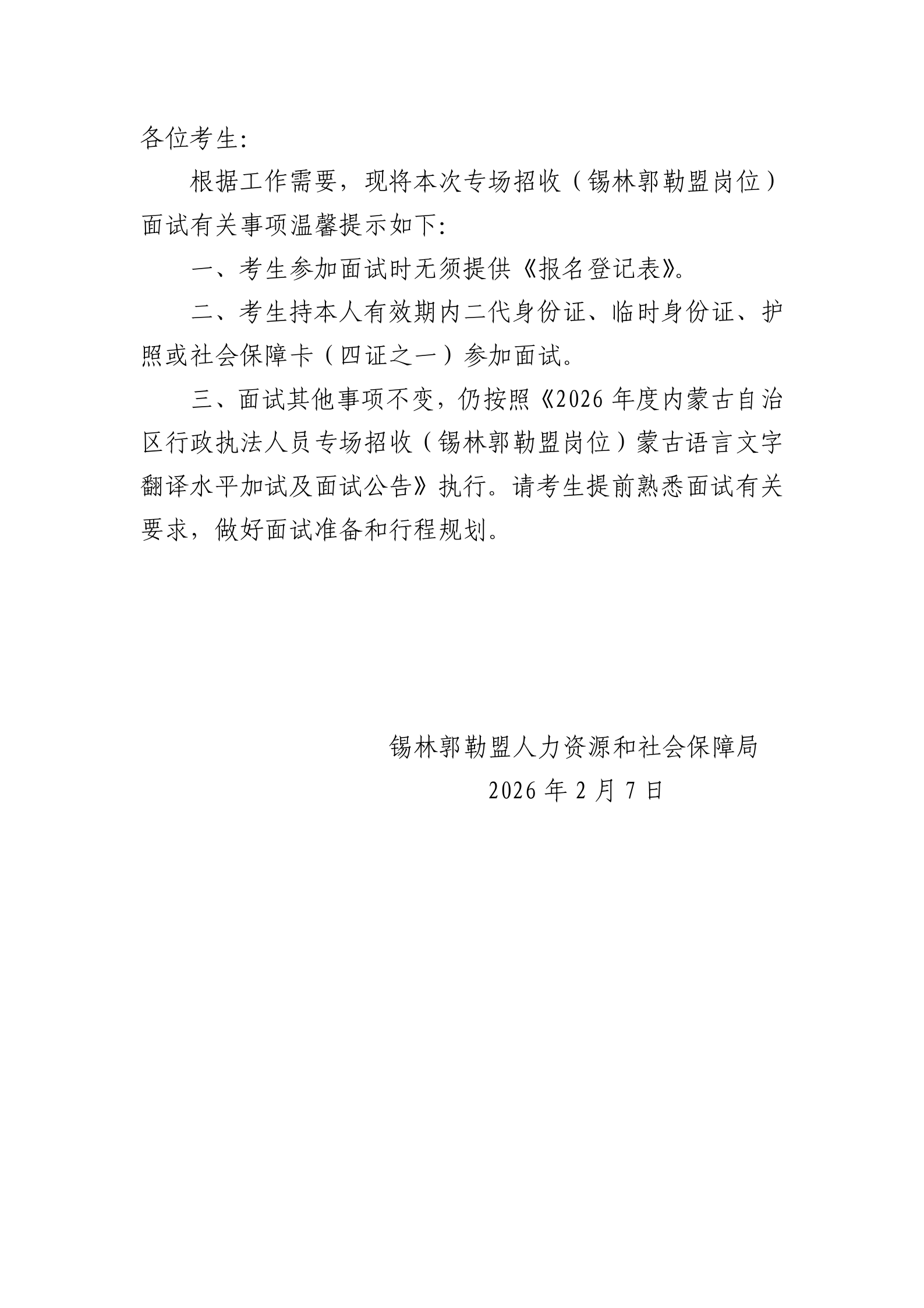 2026年度內(nèi)蒙古自治區(qū)行政執(zhí)法人員專場招收(錫林郭勒盟崗位)面試溫馨提示