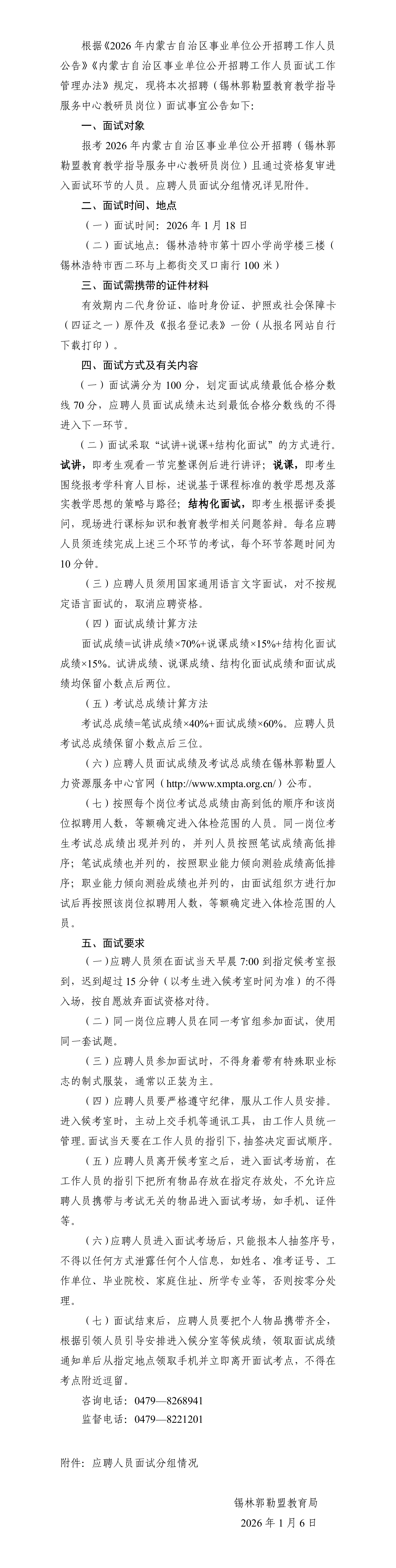 2026年內(nèi)蒙古自治區(qū)事業(yè)單位公開招聘 (錫林郭勒盟教育教學(xué)指導(dǎo)服務(wù)中心教研員崗位)面試公告