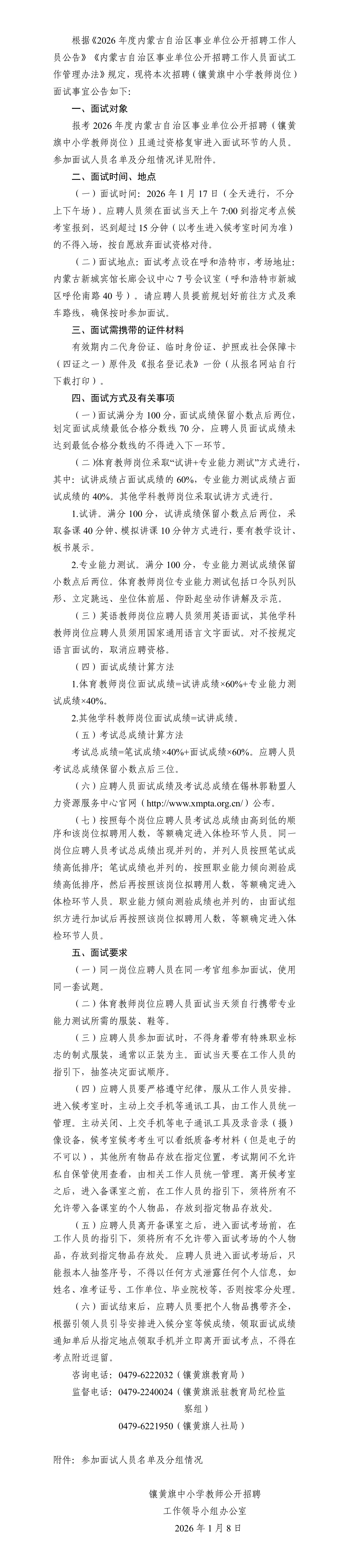 2026年度內(nèi)蒙古自治區(qū)事業(yè)單位公開招聘 (鑲黃旗中小學(xué)教師崗位)面試公告