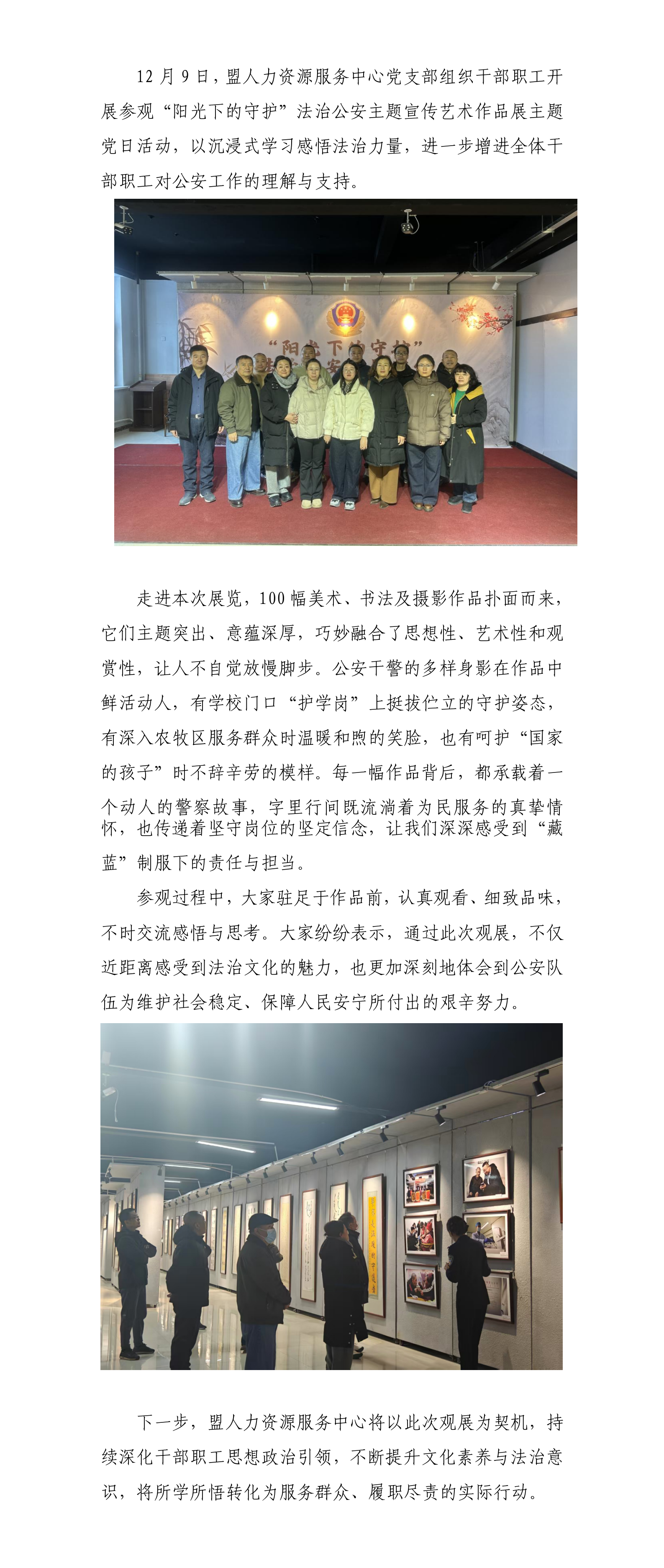 盟人力資源服務(wù)中心 參觀“陽光下的守護(hù)”法治公安主題宣傳藝術(shù)作品展